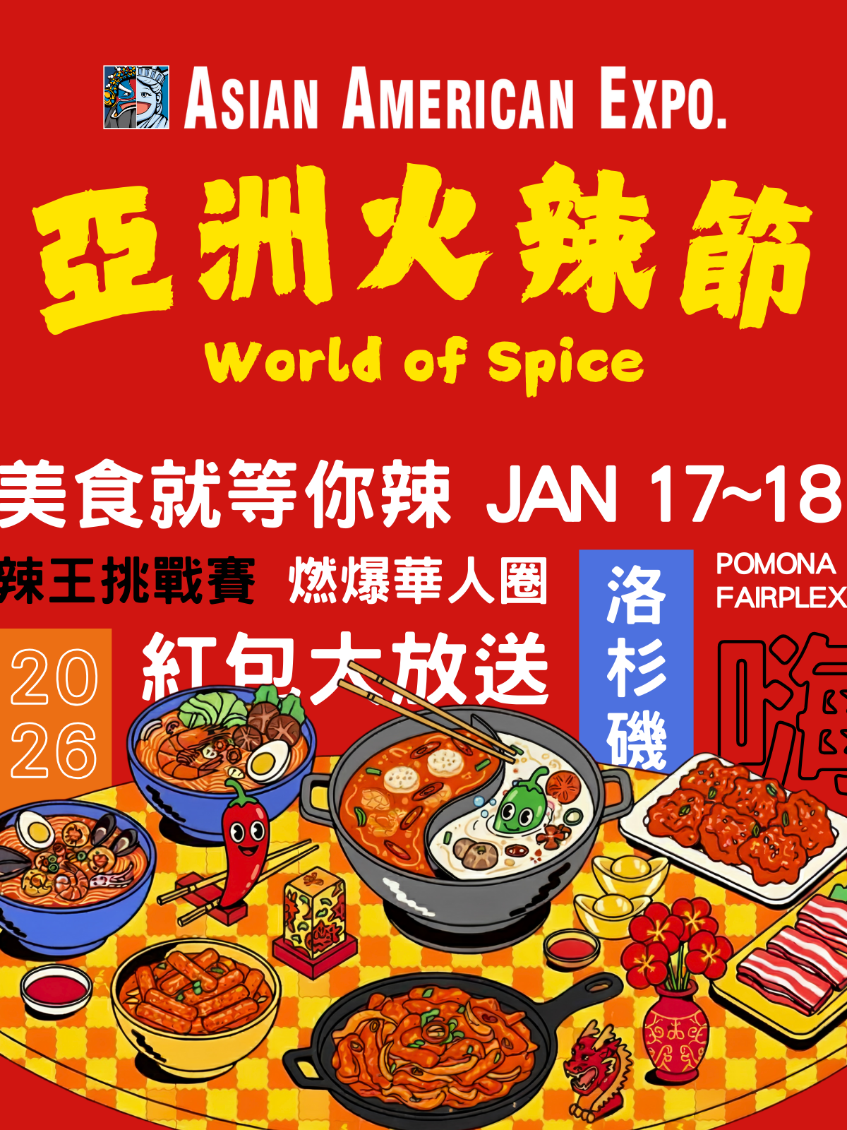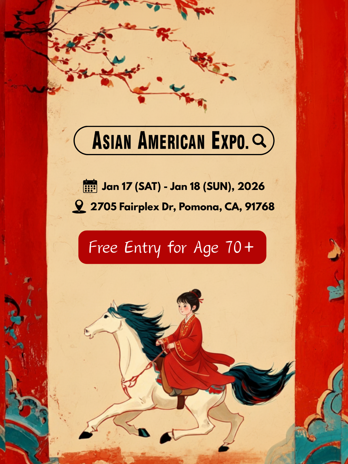 Join us for the 44th annual Asian American Expo—the largest Lunar New Year festival in the United States! This January 2026, we're bringing two unforgettable days of culture, celebration, and community to Fairplex as we ring in the Year of the Horse. Immerse yourself in the sights, sounds, and flavors of Asia with over 1,400 vendors, mouthwatering cuisine from three food pavilions, and non-stop entertainment across eight stages. Watch mesmerizing Chinese acrobatics, feel the thunder of Japanese Taiko drums, and marvel at spectacular Lion and Dragon dances that bring ancient traditions to life. Whether you're reconnecting with your heritage, introducing your family to Asian culture, or simply seeking an extraordinary experience, the Asian American Expo delivers excitement at every turn. Since 1982, we've been the place where communities come together, traditions thrive, and memories are made.